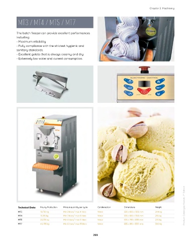 Technical Data Hourly Production Mixture quantity per cycle Condensation Dimensions Weight MT3 10/30 kg Min 2 liters/ max 4 liters Water 535 x 655 x 1355 mm 244 kg