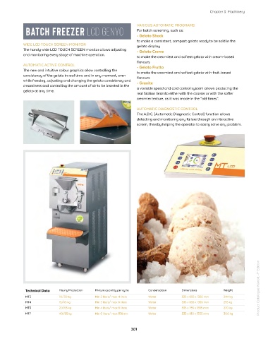 icecream WIDE LCD TOUCH SCREEN MONITOR VARIOUS AUTOMATIC PROGRAMS Chapter 3: Machinery