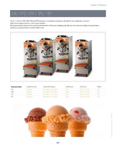 mixes, in a easy way and with an high level of hygienic safety. “3 in 1” in the four TP3, TP4, TP5 and TP7 versions is a complete laboratory intended to mix, pasteurize, cook and