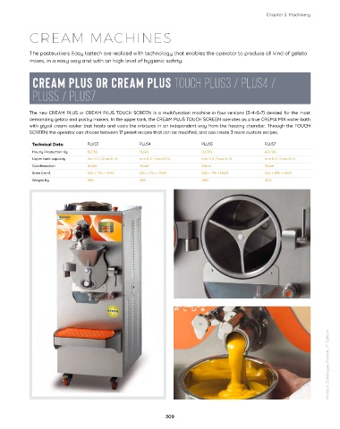 demanding gelato and pastry makers. In the upper tank, the CREAM PLUS TOUCH SCREEN operates as a true CREMA MIX water-bath