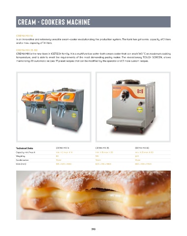 CREMA MIX is the new-born in ICETECH family. It is a multifunction water-bath cream cooker that can reach 140 °C as maximum cooking •Electronic control of ice-cream consistency. •Mixer system complete with counter-stirrer and interchangeable