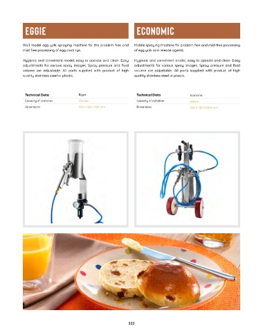 Spraying machine for the mist-free spraying of diluted egg product, releasing agent, glazing agent. Built in compressor unit in frame.