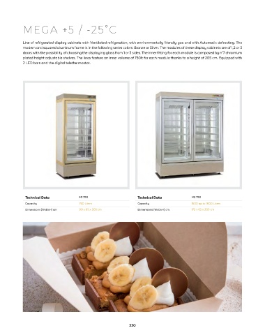 Line of refrigerated display cabinets with Ventilated refrigeration, with environmentally friendly gas and with Automatic defrosting. The