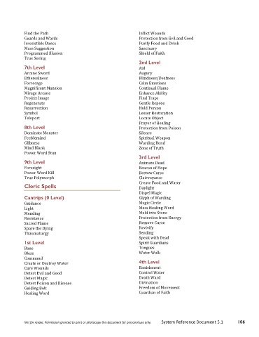 Not for resale. Permission granted to print or photocopy this document for personal use only. System Reference Document 5.1 106