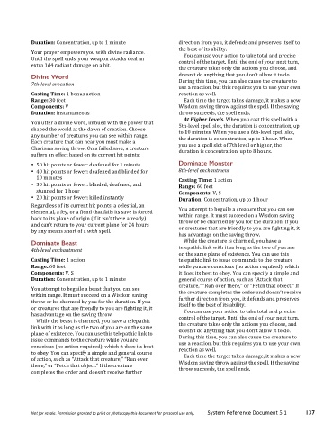 Not for resale. Permission granted to print or photocopy this document for personal use only. System Reference Document 5.1 137
