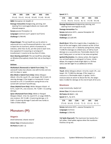 Shapechanger. The werewolf can use its action to Death Burst. When the magmin dies, it explodes in a