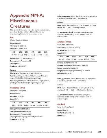 vermin, and other critters. The stat blocks are An awakened shrub is an ordinary shrub given