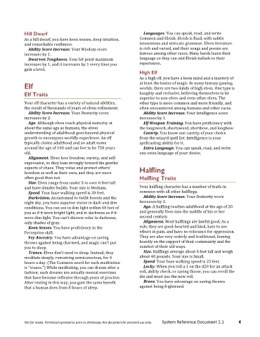 Trance. Elves don’t need to sleep. Instead, they Size. Halflings average about 3 feet tall and weigh