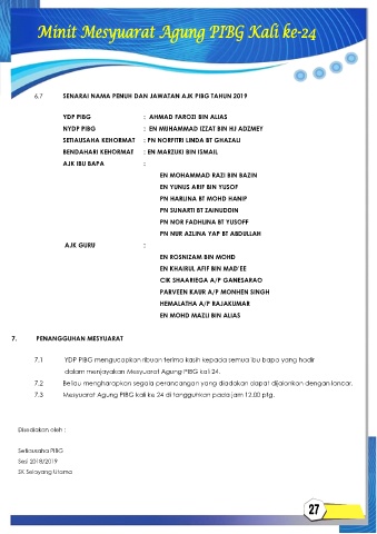 6.7 SENARAI NAMA PENUH DAN JAWATAN AJK PIBG TAHUN 2019