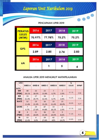 PENCAPAIAN UPSR 2019 ANALISA UPSR 2019 MENGIKUT MATAPELAJARAN