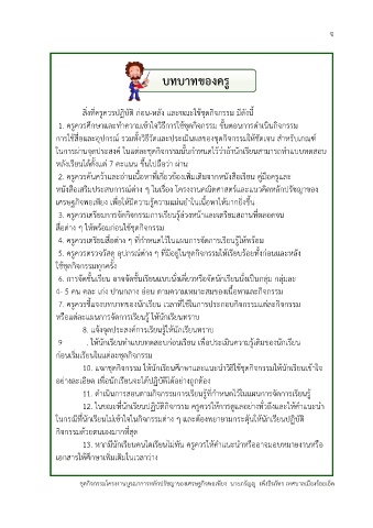 7. ครูควรชี้แจงบทบาทของนักเรียน เวลาที่ใช้ในการประกอบกิจกรรมแต่ละกิจกรรม