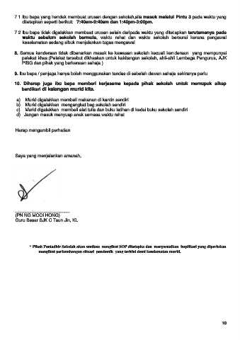 7.1 Ibu bapa yang hendak membuat urusan dengan sekolah,sila masuk melalui Pintu 3 pada waktu yang