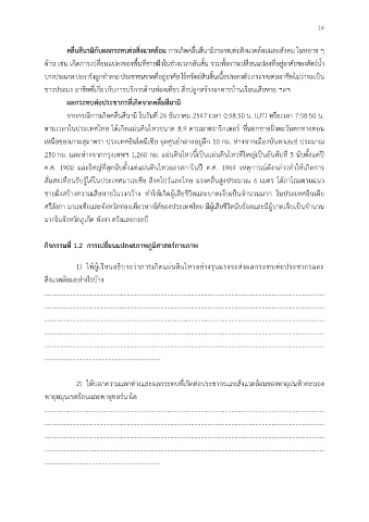 1) ใหผูเรียนอธิบายวาการเกิดแผนดินไหวอยางรุนแรงจะสงผลกระทบตอประชากรและ