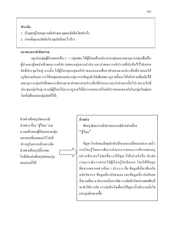 ครตดตามสังเกต การใช้เหตผลของแต่ละกล่ม หากข้อมูลยังไม่เพียงพอ ครอาจช้แนะให้อภปรายเพิ่มเตมได้