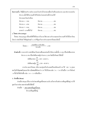 รอยละ (Percentage) เปนสถตทใช้กันมากในงานวิจัย เพราะค านวณและท าความเข้าใจได้ง่าย นยม