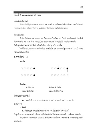 1. บท บทหนึ่งมี 4 วรรค แบงเปนวรรคแรก 5 คํา วรรคหลัง 6 คํา รวม 11 คํา