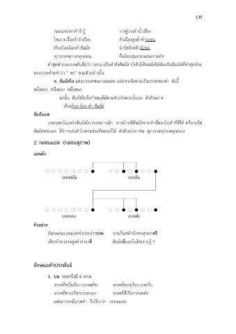 ข. สัมผัสใน แตละวรรคของกลอนหก แบงชวงจังหวะเปนวรรคสองคํา ดังนี้
