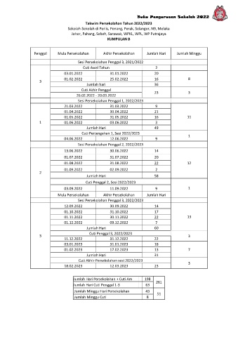 Jumlah Hari Cuti Penggal 1-3 63 261