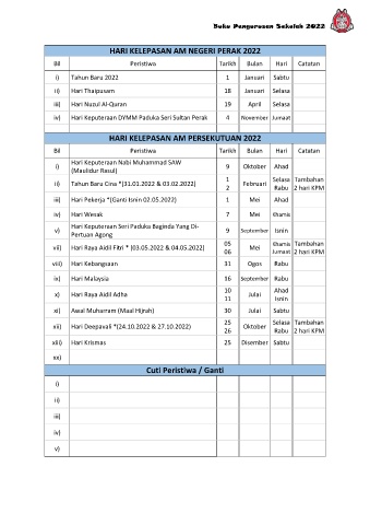 HARI KELEPASAN AM NEGERI PERAK 2022