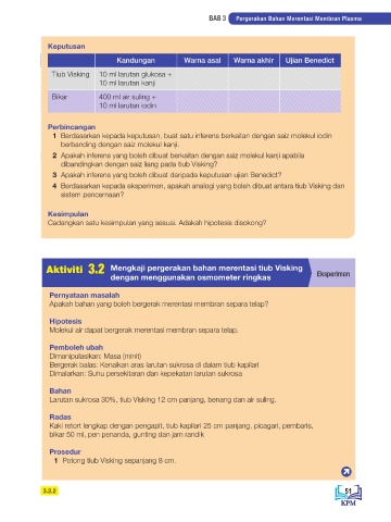 Aktiviti 3.2 Mengkaji pergerakan bahan merentasi tiub Visking