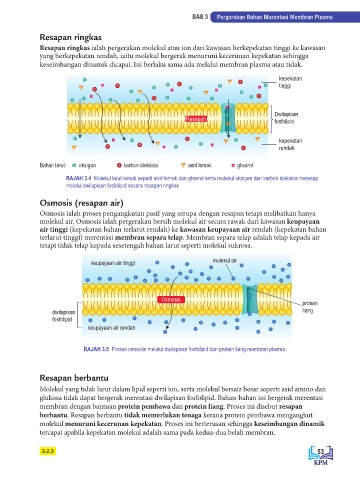 RAJAH 3.5 Proses osmosis melalui dwilapisan fosfolipid dan protein liang membran plasma