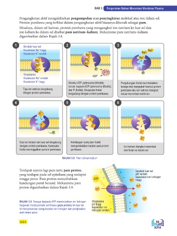 RAJAH 3.9 Tenaga daripada ATP membolehkan ion hidrogen Sitoplasma – +