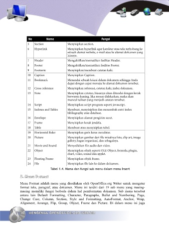 Tabel 1.4. Nama dan fungsi sub menu dalam menu Insert