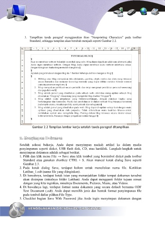 Gambar 2.2 Tampilan lembar kerja setelah tanda paragraf ditampilkan