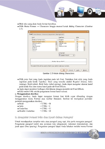 ● Pilih Menu Format → Characters hingga muncul kotak dialog Characters (Gambar