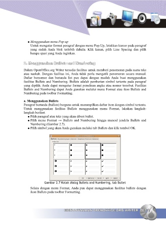 ● Pilih menu Format → Bullets and Numbering hingga muncul jendela Bullets and