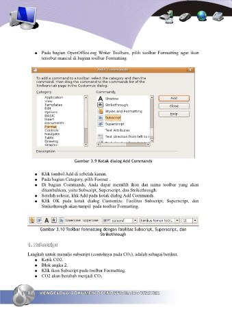 ● Klik OK pada kotak dialog Customize. Fasilitas Subscript, Superscript, dan