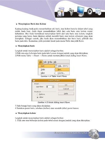 baris pada tabe. Kemudian, pilih perintah Insert pada menu Table dan pilih Rows.