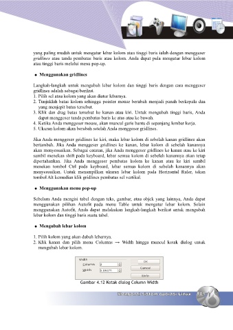 gridlines atau tanda pembatas baris atau kolom. Anda dapat pula mengatur lebar kolom