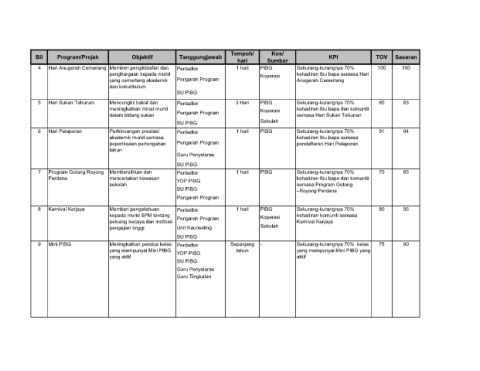 Bil Program/Projek Objektif Tanggungjawab KPI TOV Sasaran