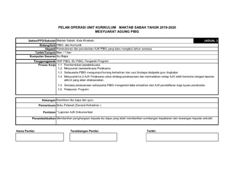 PELAN OPERASI UNIT KURIKULUM MAKTAB SABAH TAHUN 2019-2020
