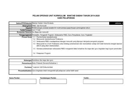 PELAN OPERASI UNIT KURIKULUM MAKTAB SABAH TAHUN 2019-2020