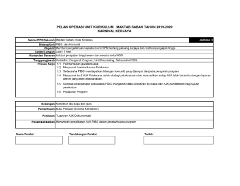 PELAN OPERASI UNIT KURIKULUM MAKTAB SABAH TAHUN 2019-2020