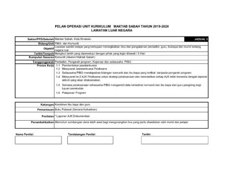 PELAN OPERASI UNIT KURIKULUM MAKTAB SABAH TAHUN 2019-2020