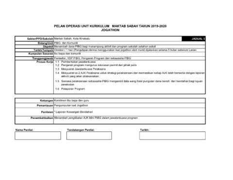 PELAN OPERASI UNIT KURIKULUM MAKTAB SABAH TAHUN 2019-2020