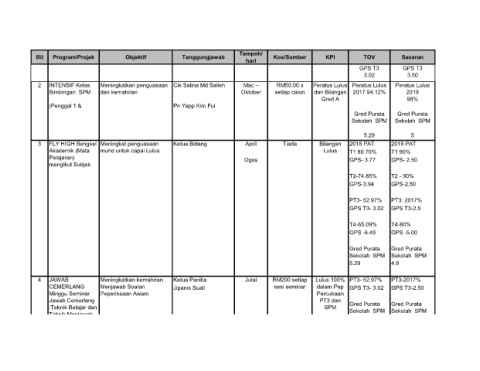 Bil Program/Projek Objektif Tanggungjawab Kos/Sumber KPI TOV Sasaran