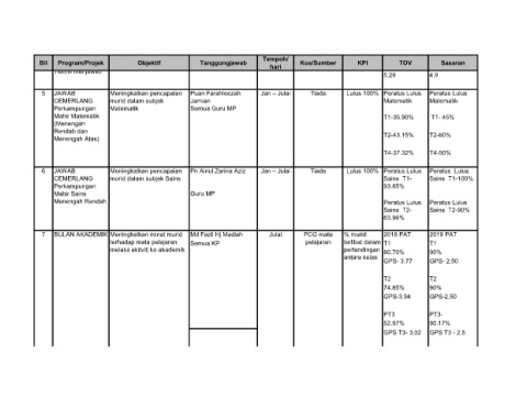 Bil Program/Projek Objektif Tanggungjawab hari Kos/Sumber KPI TOV Sasaran