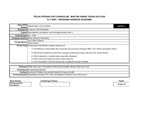 PELAN OPERASI UNIT KURIKULUM MAKTAB SABAH TAHUN 2019-2020