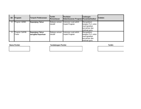 Bil Program Tempoh Pelaksanaan Catatan