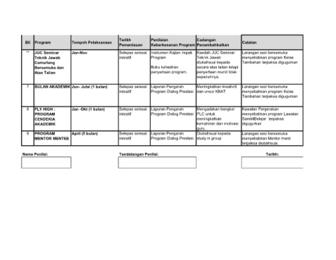 Nama Penilai: Tandatangan Penilai: Tarikh: