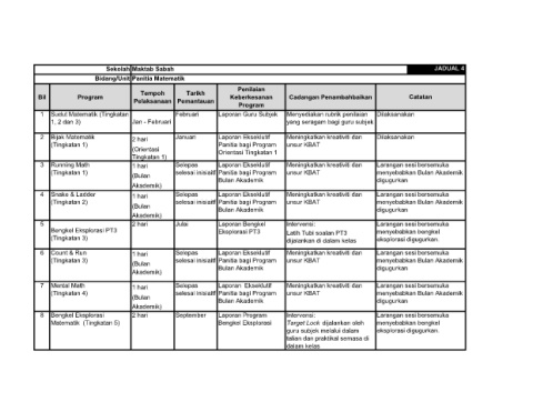 1 Sudut Matematik (Tingkatan Februari Laporan Guru Subjek Menyediakan rubrik penilaian Dilaksanakan