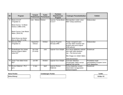 9 Modul A.S.A.P Julai - Oktober Oktober Laporan Panitia Modul Meningkatkan soalan unsur Dilaksanakan