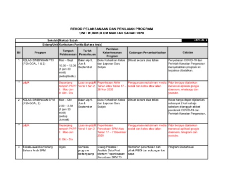 REKOD PELAKSANAAN DAN PENILAIAN PROGRAM