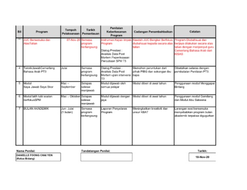 Nama Penilai: Tandatangan Penilai: Tarikh: