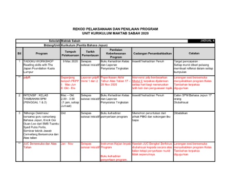 REKOD PELAKSANAAN DAN PENILAIAN PROGRAM