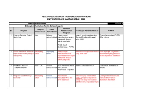 REKOD PELAKSANAAN DAN PENILAIAN PROGRAM
